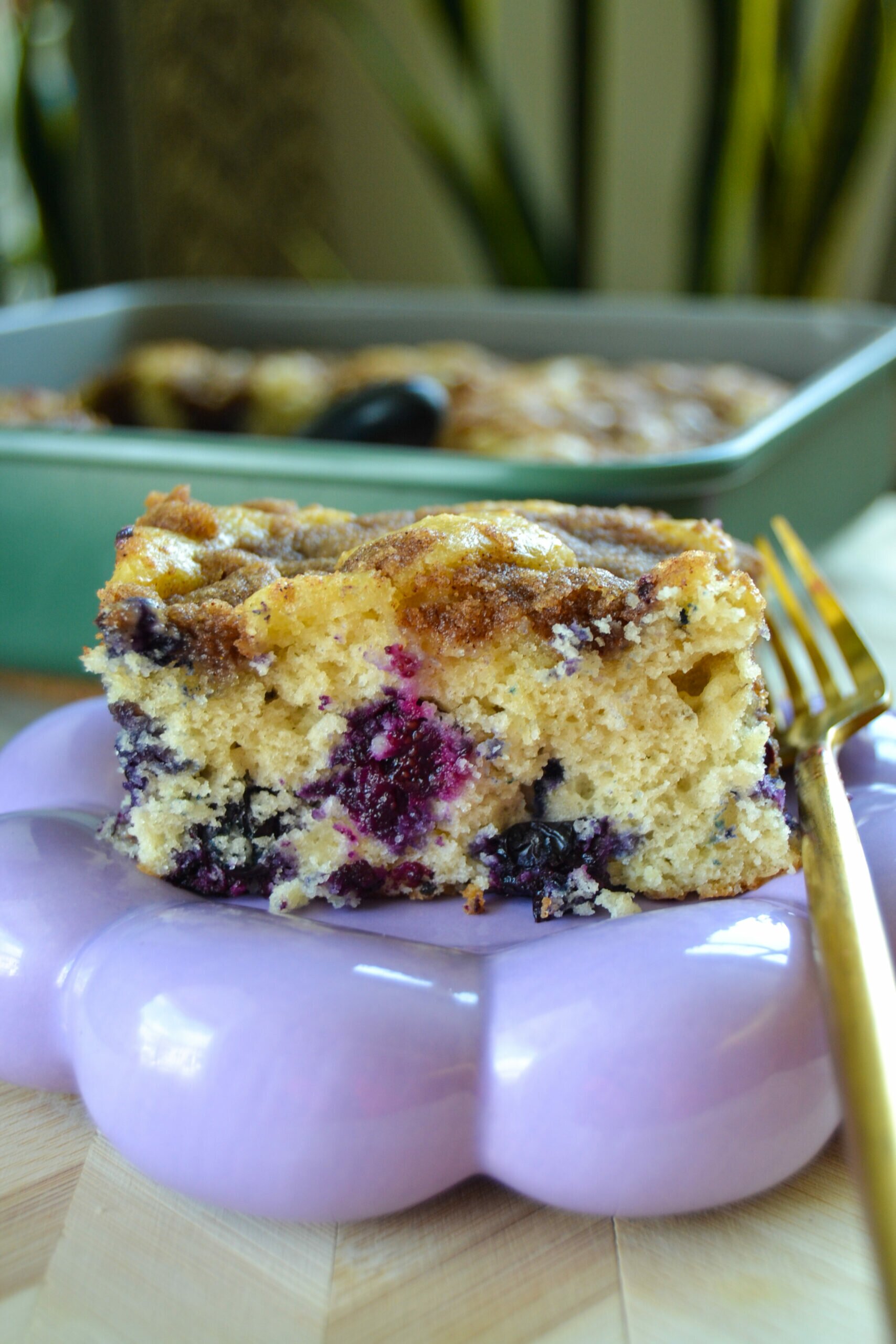 Here is one of the recipes I’ve baked with this set. This is the 9″ Square Pan. I wanted to make more summer fruit recipes before the season is over! This coffee cake is moist, a crowd pleaser, easy to make, and absolutely delicious.
